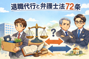 先日,退職代行サービス大手「モームリ」を運営する会社の社長が,弁護士法違反の疑いで警視庁に逮捕されたとの報道がありました。報道によれば,報酬を得る目的で退職希望者を弁護士に紹介し,その見返りとして紹介料等を受け取っていた […]